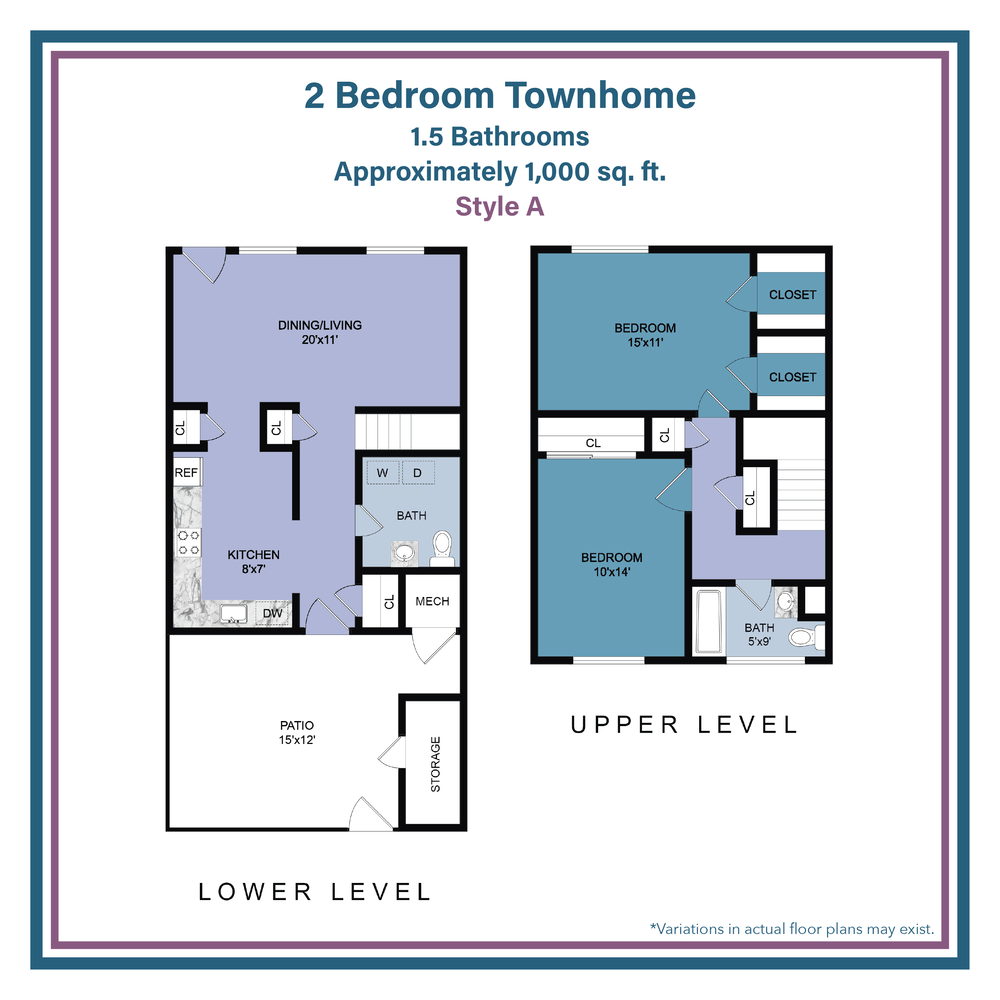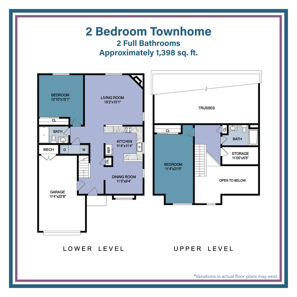 Two Bedroom Bi-Level Townhouses